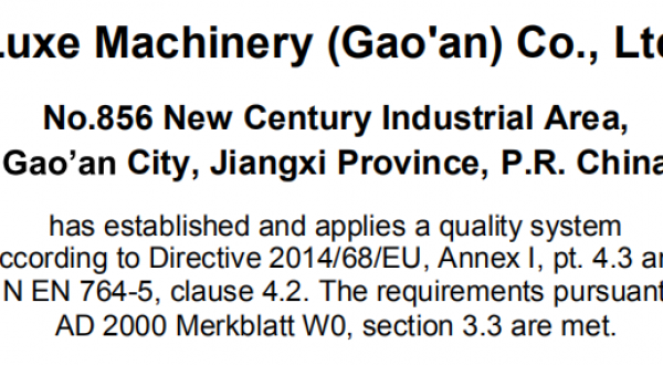 祝贺璐克斯集团通过PED认证